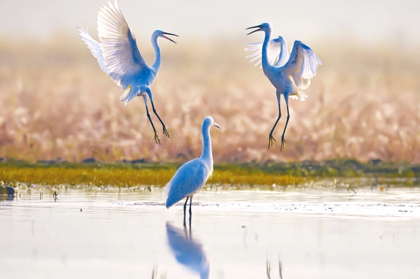 深秋的宿鸭湖,植被茂密,湖水丰盈,成群的白鹭、大雁时而在空中盘旋飞舞,时而在水面嬉戏玩耍,展现勃勃生机。 “越来越多的候鸟选择来此过冬,这就是 生态改善的鲜活名片。”常年在宿鸭湖抓拍候鸟的摄影爱好者张斌说,多年来他跟候鸟一样,按时节蹲点跟拍,“今年雨水丰富,来此越冬的候鸟应该很多,一定有机会拍到珍贵的画面。” “十四五”时期, 秉持“生态优先、绿色发展”理念,深入开展河湖水生态环境治理,通过清淤扩容、控源截污等综合治理,宿鸭湖成了“鸟类天堂”,每年吸引10多万只鸟类来此越冬,栖息鸟类包括黑颈鹤、白枕鹤、鸿雁、大天鹅等190多种,不仅为城市增添了一份灵动与生机,还成为我市一张亮丽的生态名片。 绘就生态画卷,奏响绿色旋律,交织成一幅美丽动人的乡村画卷。走进汝南县金铺镇姚寨村,映入眼帘的是平整的村道、错落有致的农房、精心打理的小菜园和小花园,昔日污水横流、杂物乱堆的景象已不见踪影。 姚寨村的美丽蝶变,是 推进土壤污染防治和农村环境治理的生动缩影。“十四五”期间,我市以美丽乡村建设为抓手,扎实开展农村环境综合整治,1184个行政村实现生活污水治理管控,154个乡镇政府驻地生活污水处理设施实现全覆盖,79个集中式污水处理设施完成整治提升,美丽乡村颜值气质双提升。