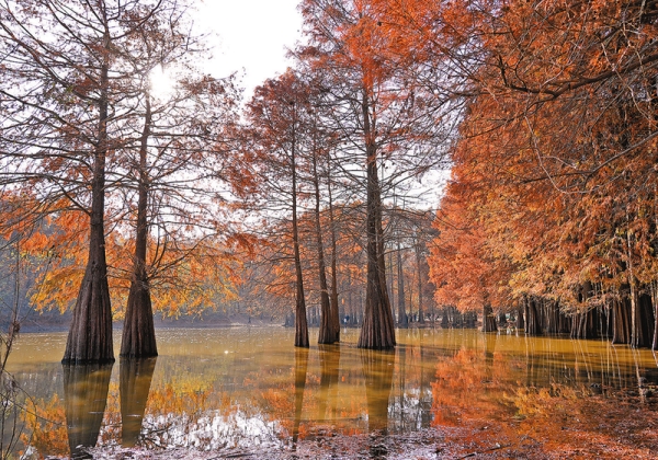 近日,在确山县薄山林场土门林区,水杉林披上“红装”,仿佛是大自然精心绘制的画卷,尽显冬日的浪漫。 (本报记者 王永良 摄)