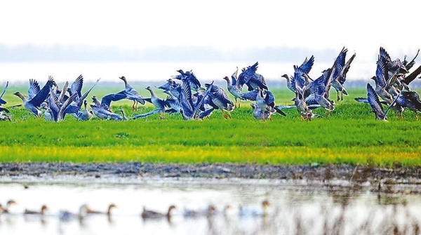 几年前,我和同事一起到宿鸭湖拍摄候鸟,当时那里刚完成清淤工程,只见数千只野鸭“铺”在水面,咕咕嘎嘎的欢叫声此起彼伏。与拥挤在一起的野鸭形成对比的是几十只白鹭或滑行于湖面,或亭亭玉立于湖畔,优雅而悠闲;十几只白鹤站在岸边,似在打盹休憩;几十只大雁扎堆在湖边的芦苇荡里迎接暖阳……清湖鸟影、水天一色、人鸟和谐之境,令人心醉神迷。