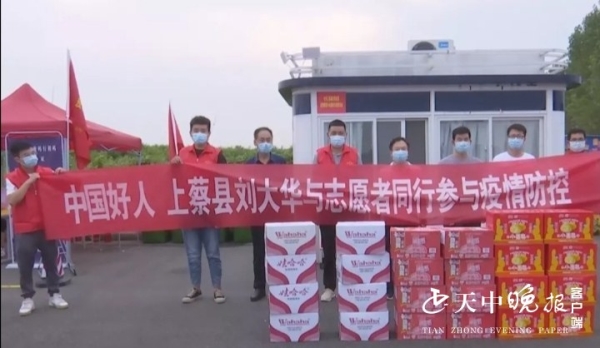 8月8日下午,“中国好人”刘大华先后驱车来到商驻南高速上蔡西站、上蔡北站的疫情防控监测站,慰问日夜奋战在疫情防控一线的工作人员和志愿者,为他们送去了方便面、矿泉水、小面包等饮食,向他们表达人民群众对一线防疫人员的关心和感谢。