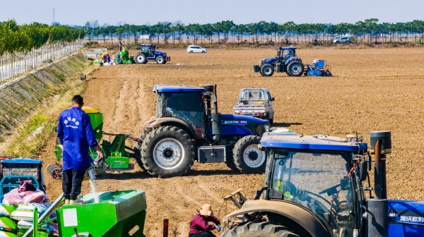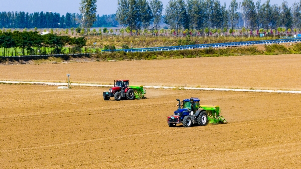 10月23日,西平县老王坡高标准农田,当地农民抢抓天气晴好时机,全力以赴推进冬小麦播种工作,为明年夏粮丰收打好基础。据了解,今年西平县计划麦播面积108.74万亩,目前已播种10.3万亩,浇水面积0.6万亩。(见习记者 赵永涛 摄)