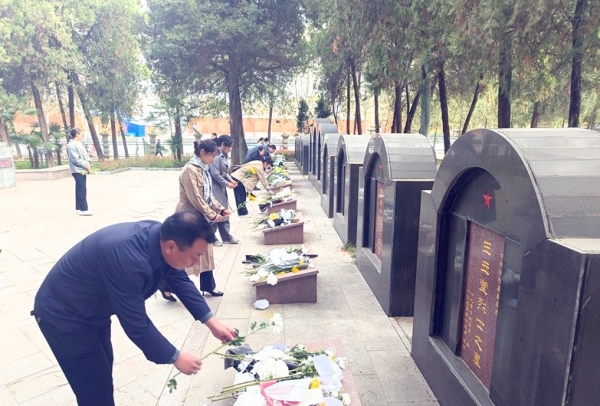2025年4月1日 上午,在清明节来临之际,泌阳县委宣传部组织机关党员前往县烈士陵园,开展“清明祭英烈”主题活动,深切缅怀革命先烈,赓续红色血脉。